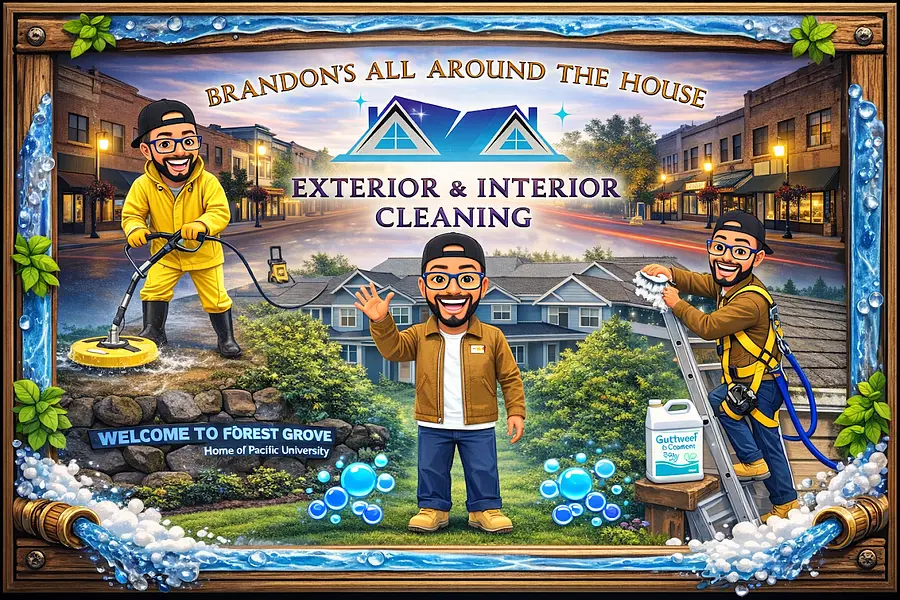 Had a wonderful experience with Brandon's All Around The House LLC. in Forest Grove, Oregon. They power-washed my home and washed ALL my windows inside and out. I was most impressed with their positive attitude, their work ethic, and their attention to detail. They did the windows from the inside...